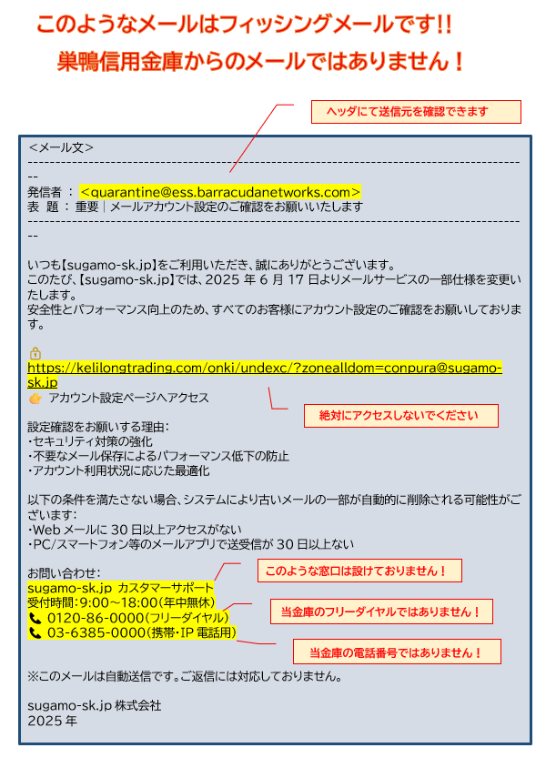 巣鴨信用金庫のドメイン名を勝手に名乗る不審なメールが発生しています。